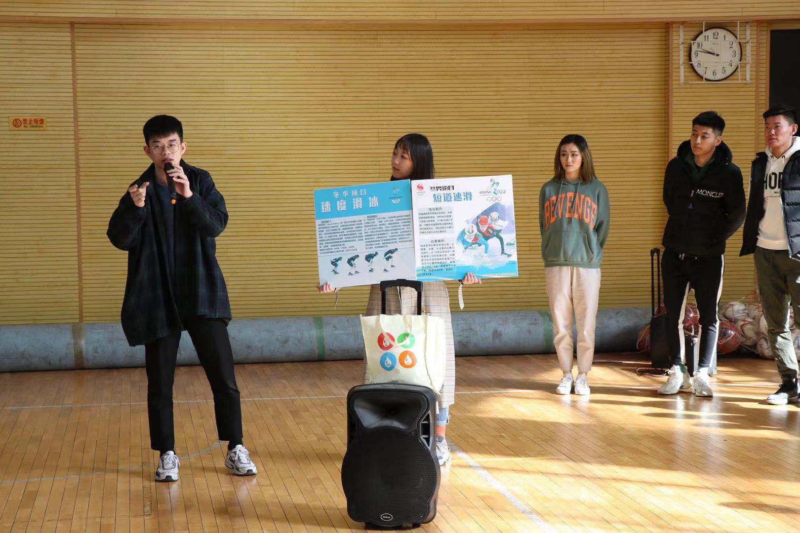 随后,由文饶同学向中国戏曲学院的同学们宣传了短道速滑以及速度滑冰的规则及区别等知识。