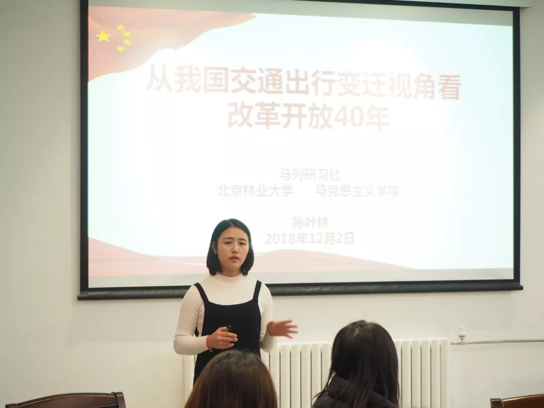 首先北京林业大学马克思主义学院研一、同时也是马克思列宁主义研习会讲师的孙叶林同学给我们带来了精彩的演讲,她从大众感同身受的交通发展入手,为我们展示了改革开放以来交通运输与日俱进的变化。孙叶林同学条理清晰的思路、活泼明了的语言,都让我们兴趣盎然、受益匪浅。
