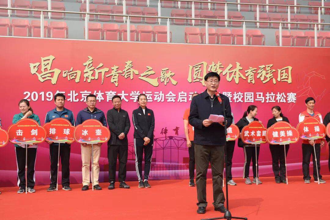 运动彰显活力,体育展现精神,正如蔡元培先生曾说:“有健全之身体,始有健全之精神。”希望通过此次活动,大家能够感受体育的魅力,享受体育的乐趣,也能够带动身边的老师和同学们积极投身体育锻炼,强健体魄,健全人格,养成终身体育锻炼习惯和健康生活方式,努力成为中国体育事业的推动者、生力军;更希望大家把赛场上迸发出的不惧风雨、迎难而上的奋斗激情、拼搏精神,转化为建设北体、强我中华,实现中华民族伟大复兴中国梦的磅礴力量。