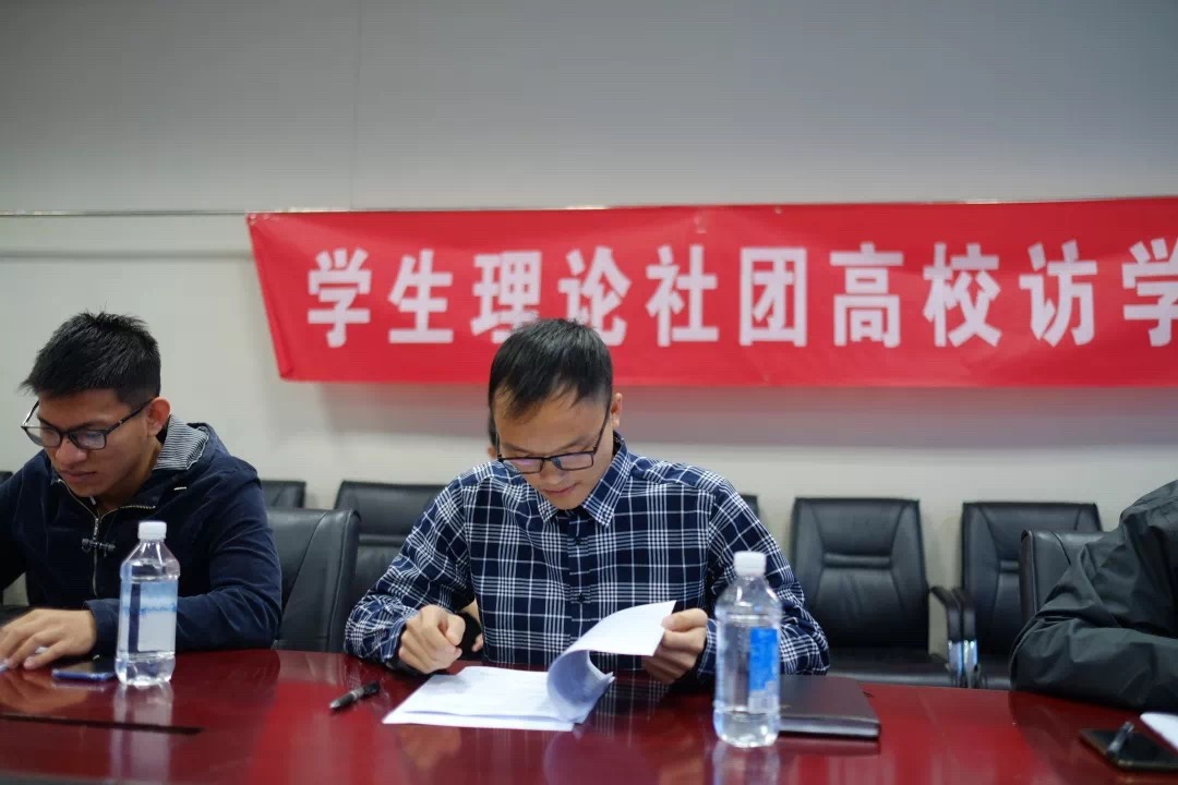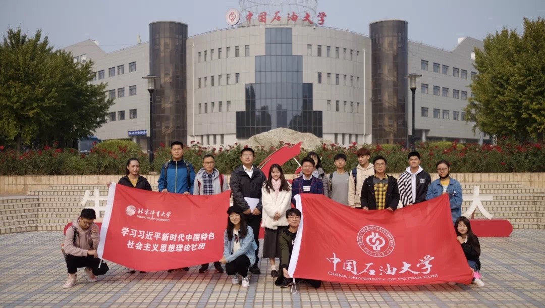 2018年10月14日上午10:00,我校社团管理委员会干事伍丽娜、张一男带领六位同学应邀来到中国石油大学(北京),与同学们进行了理论学习交流。