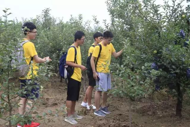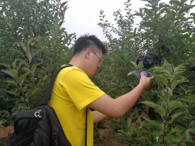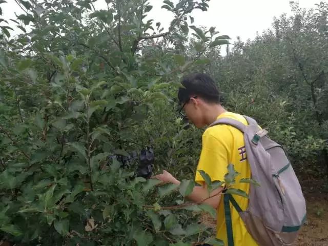 在张山营镇苹果种植园,陈书记同队员们一起进入果园了解情况。