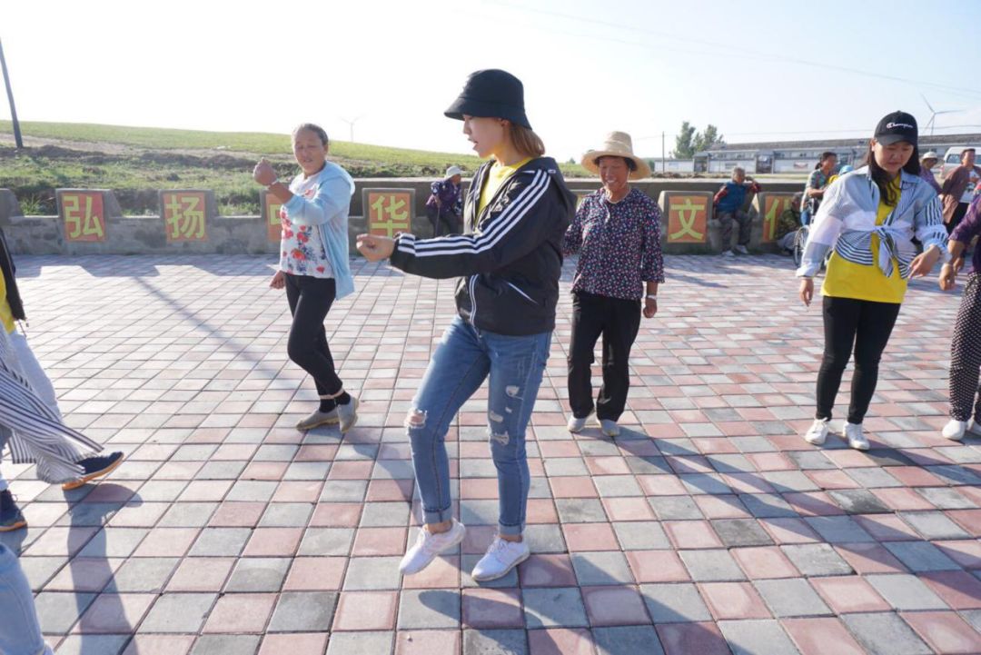 下午,我们早早来到了广场开展全民健身宣传,经过前两日的接触,我们发现当地村民对于广场舞有浓厚的兴趣,因此我们现学现教,在部分有舞蹈基础的同学的带领下,我们抽出宝贵的休息时间,加班加点学习广场舞,终于在今天下午为大家奉献了一场广场舞盛宴。活动一开始,不少村民碍于面子不太好意思学习,但是在我们的鼓励之下,越来越多的乡亲加入了广场舞行列,随着大家的欢欣跳跃,美好的时光也倏然而逝,我们在美丽的夕阳下挥手作别,相约明日的重逢。